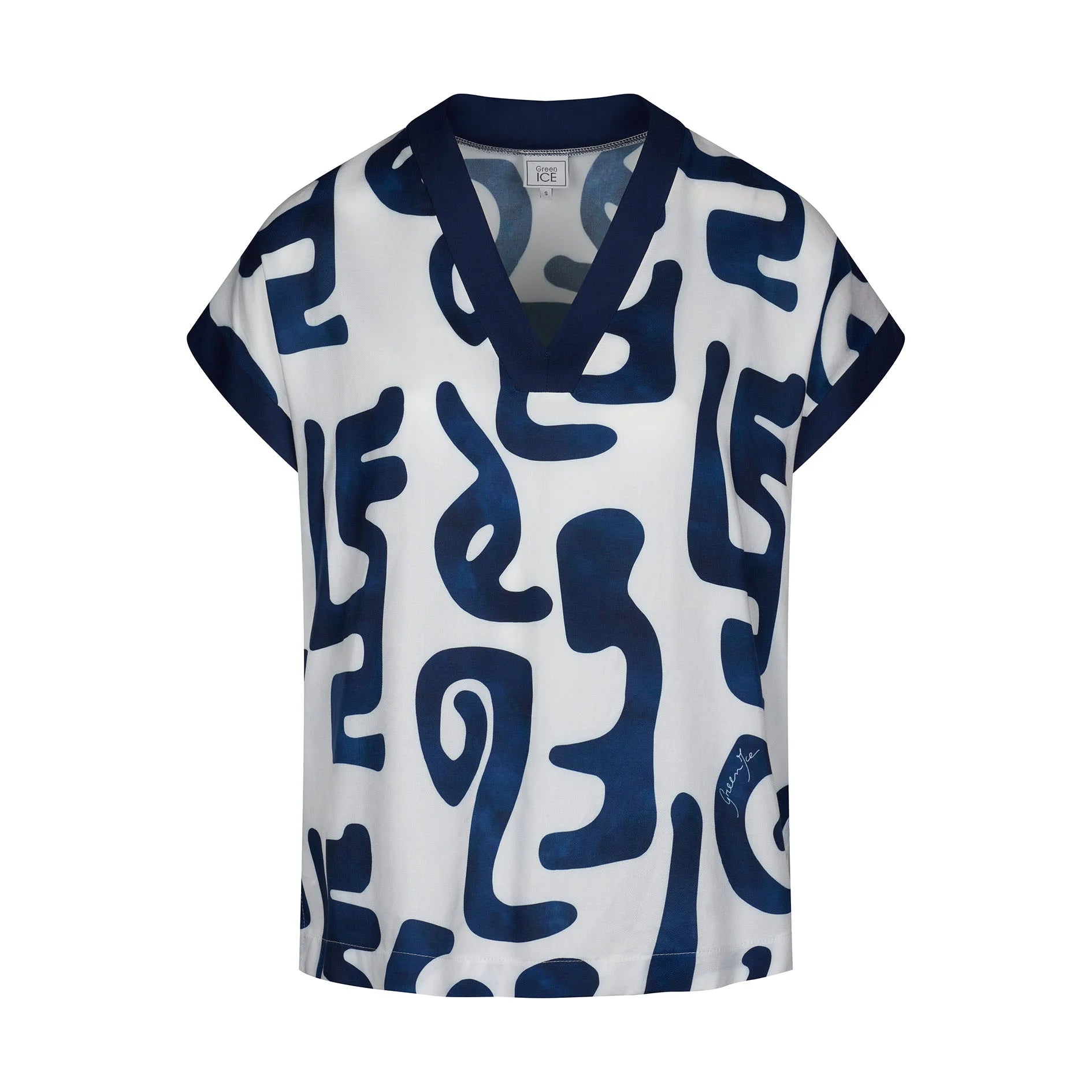Blouse met V-kraag, en afgewerkt met een patroon print voor een stijlvolle en verfijnde look