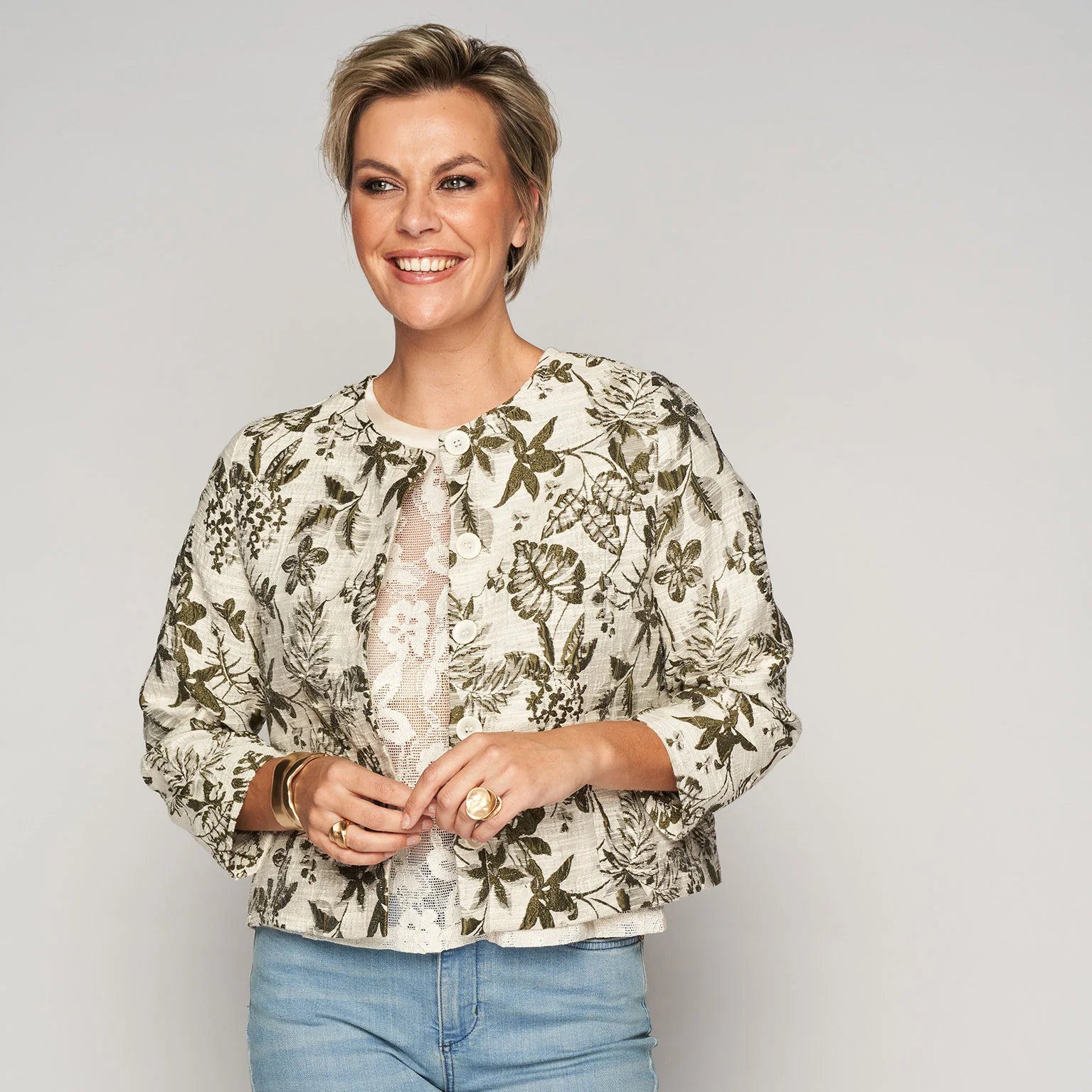 Kort jasje met boxy pasvorm en een knopensluiting aan de voorzijde voor een moderne en casual look