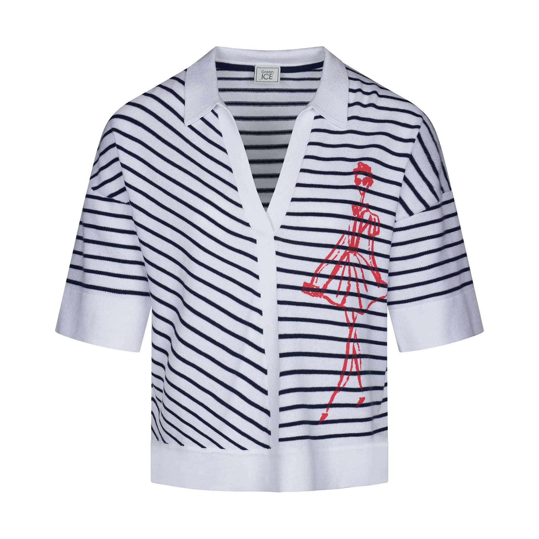 Polo pull met strepen en artwork op de voorzijde voor een sportieve en eigentijdse look
