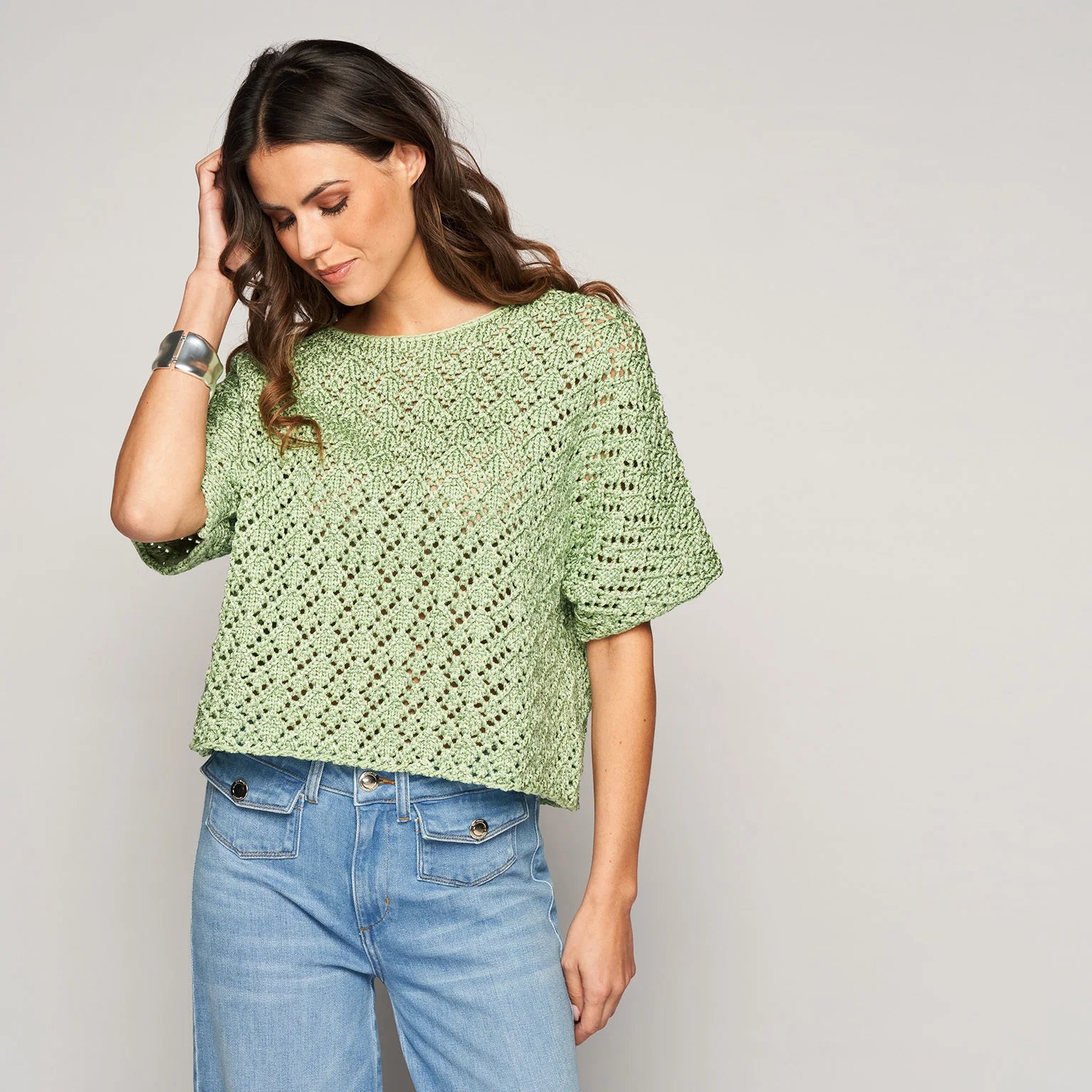 Trui met opengewerkt haakwerk voor een luchtige en stijlvolle uitstraling