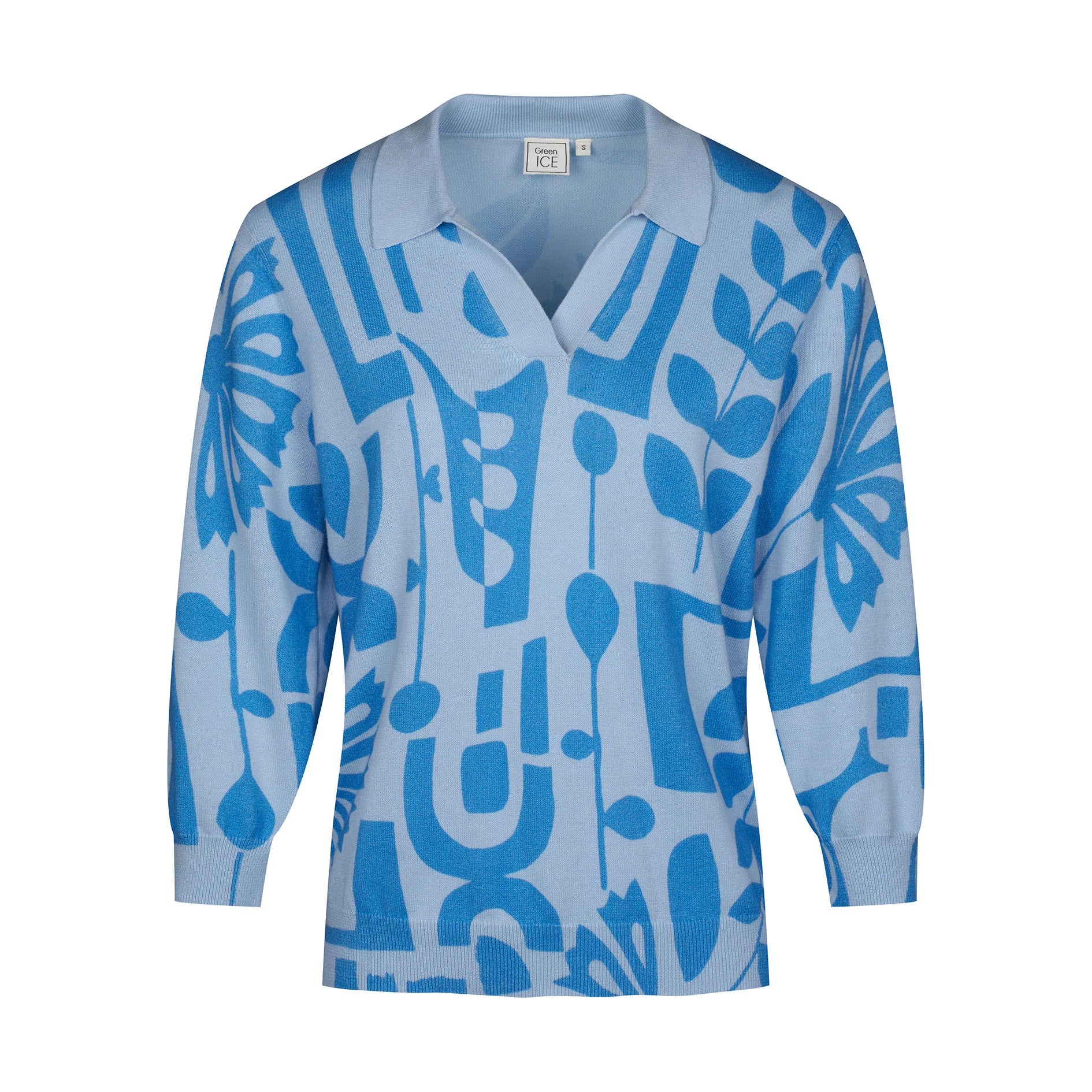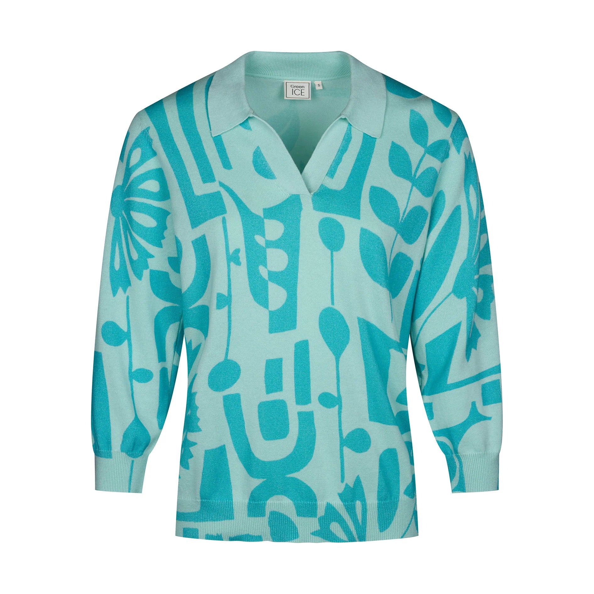 Polo pull voorzien van een print en 3/4 mouwen voor een sportieve en elegante uitstraling