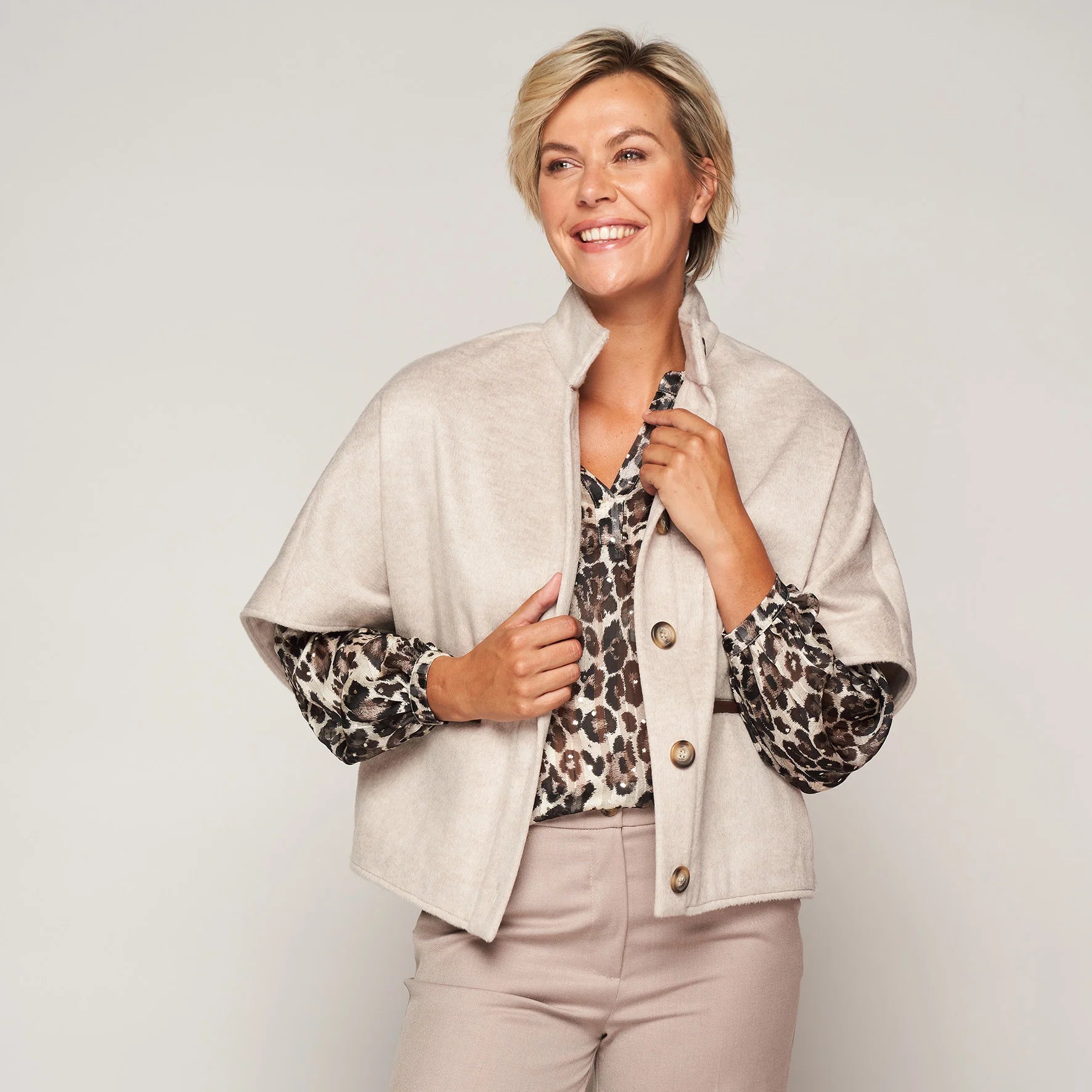 Stijlvolle cape met knoopsluiting voor een tijdloze en elegante uitstraling