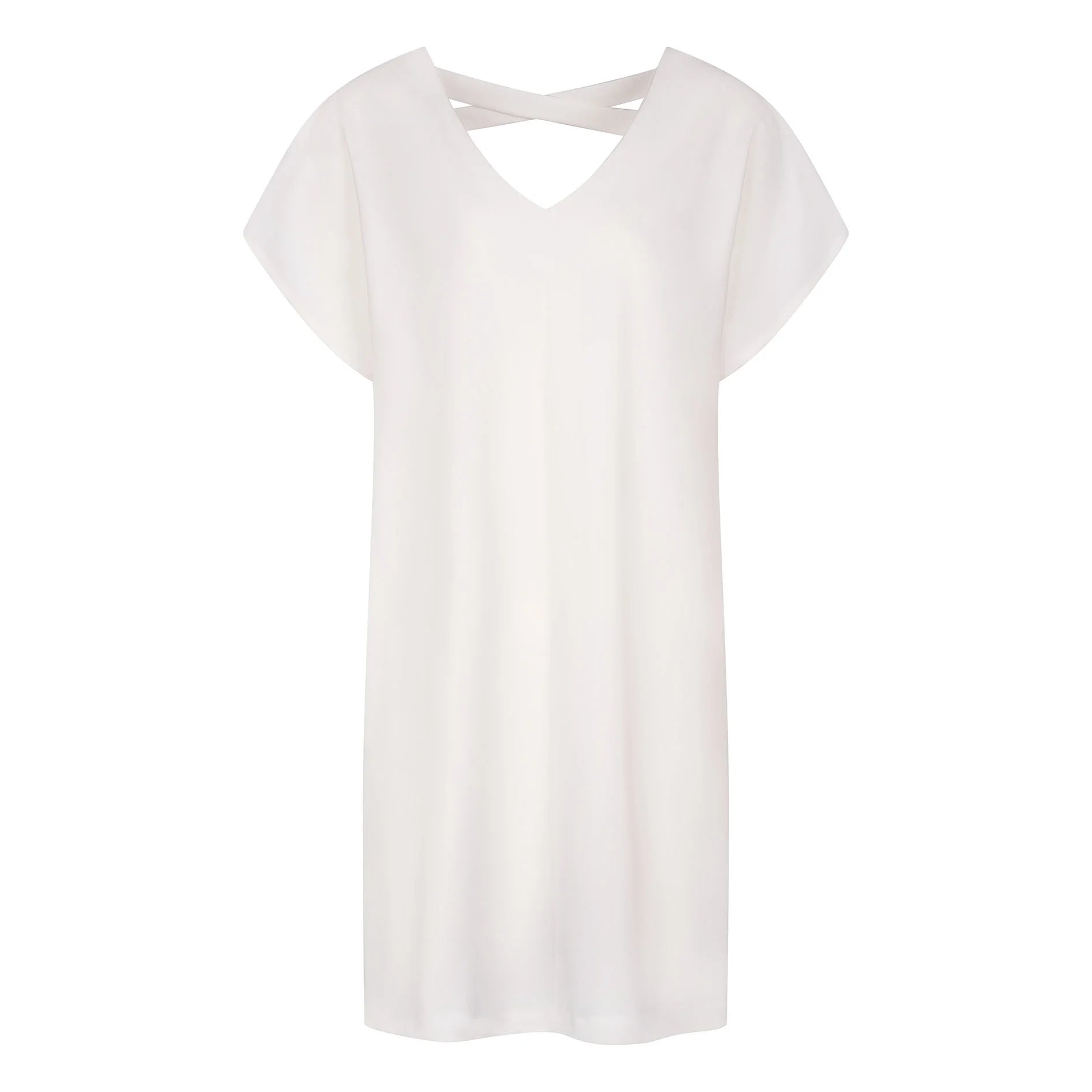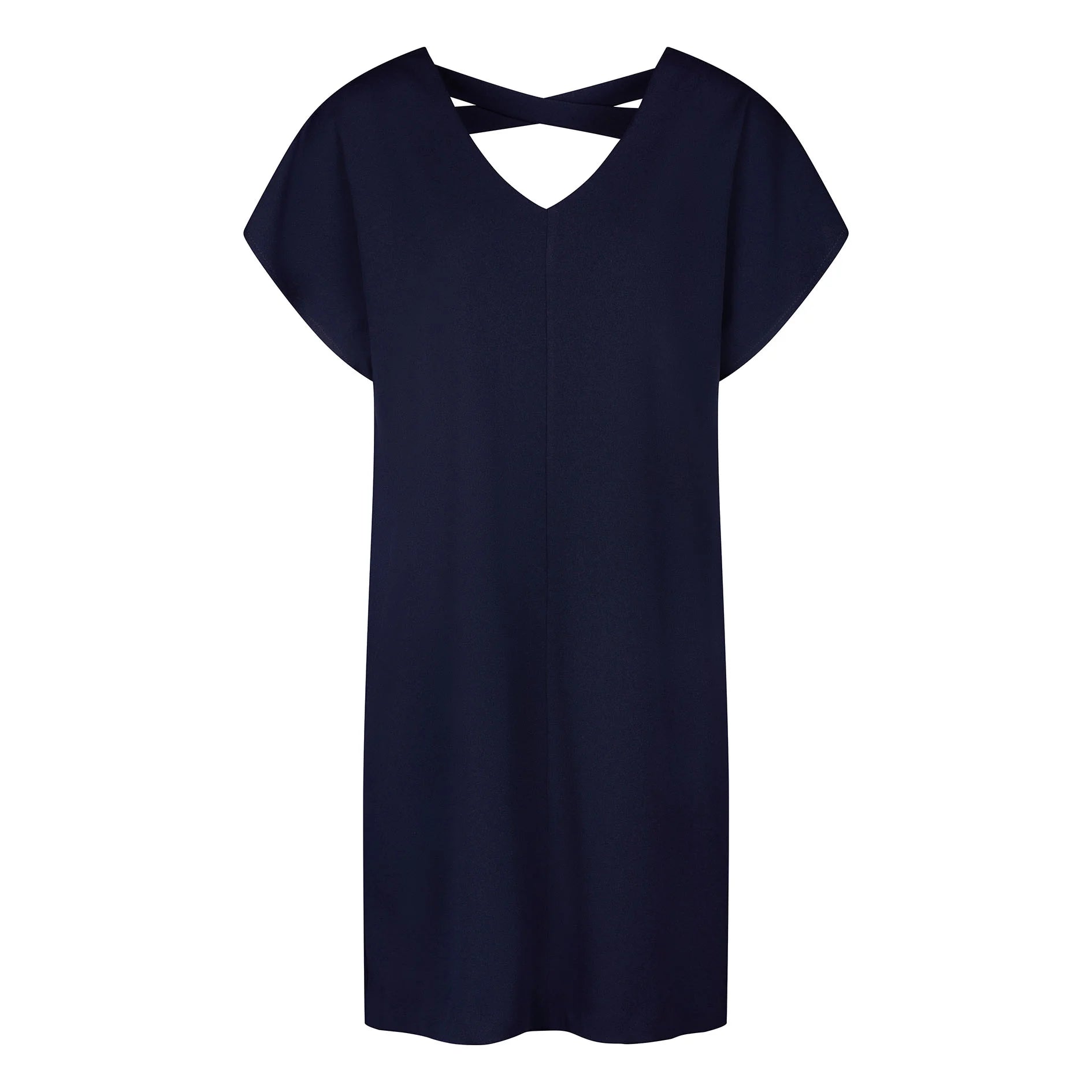 Jurk met V-hals en kruis opening op de rug, voorzien van een totale lengte vanaf het schouder-nekpunt van 95 cm...
