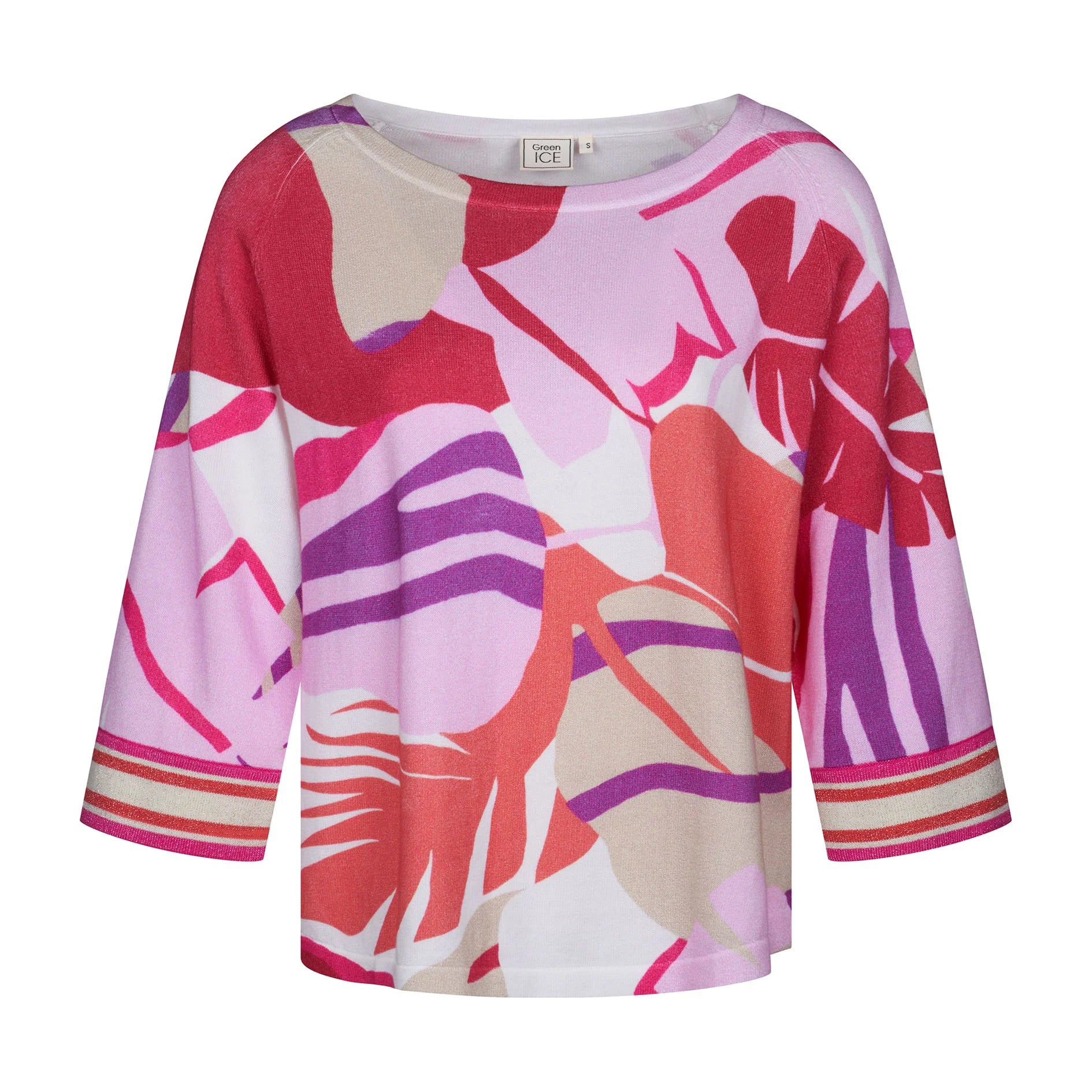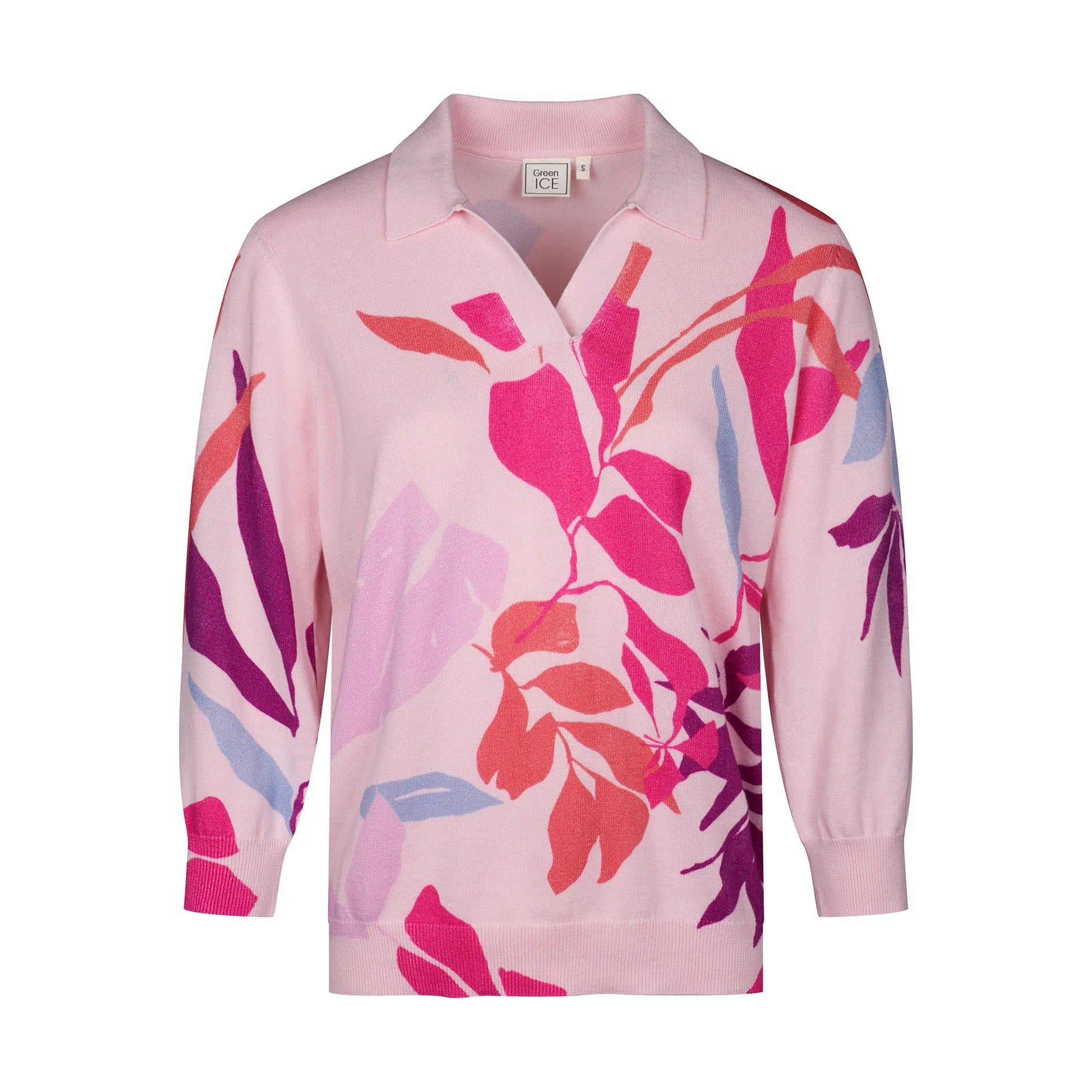 Polo pull voorzien van een print en 3/4 mouwen voor een sportieve en elegante uitstraling