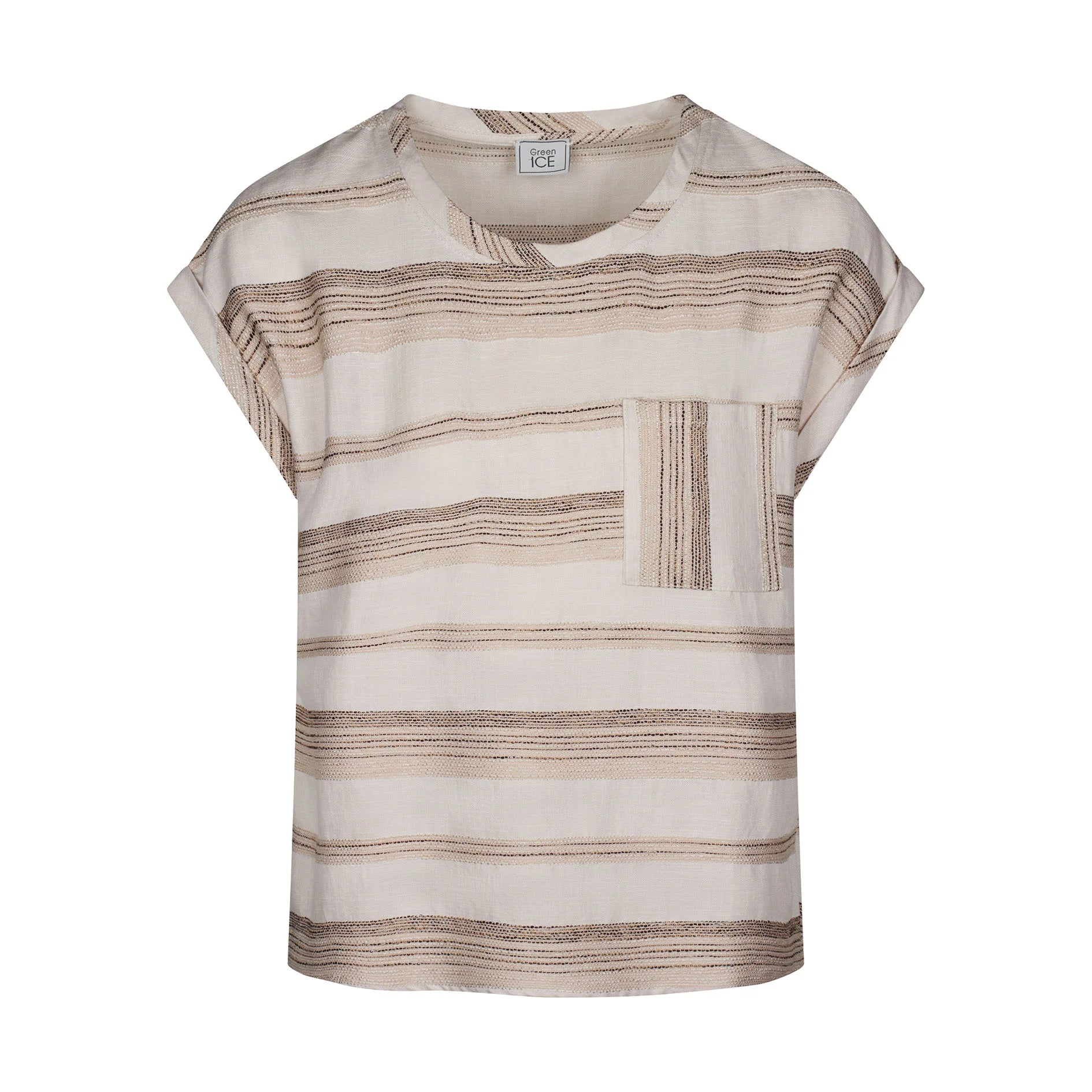 Blouse met ronde hals en kapmouwen, afgewerkt met een strepenprint en een borstzak op de voorzijde, voor een frisse en...