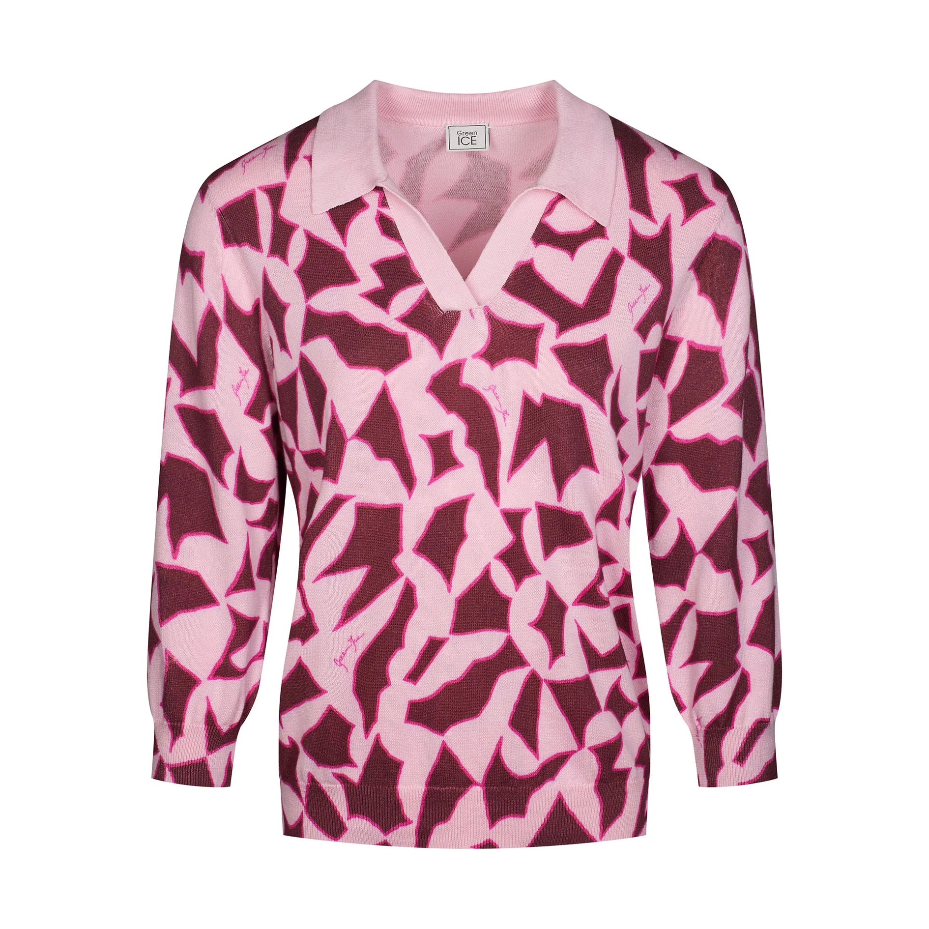 Fijngebreide polo pull (12-gauge) met een stijlvol printpatroon voor een moderne en verzorgde look.