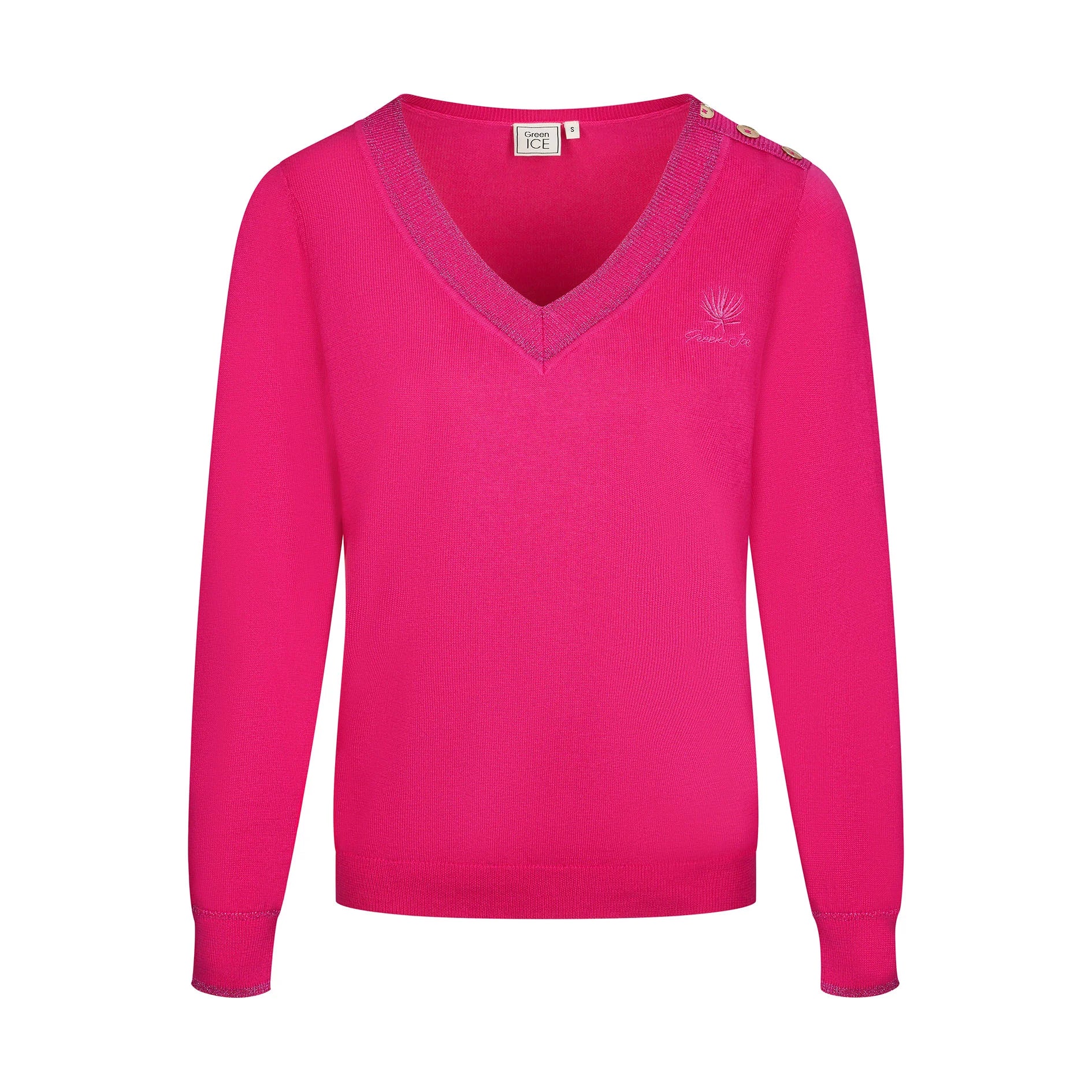 Stijlvolle v-hals trui met glinsterende lurexaccenten in de ribboorden voor een subtiele, elegante touch