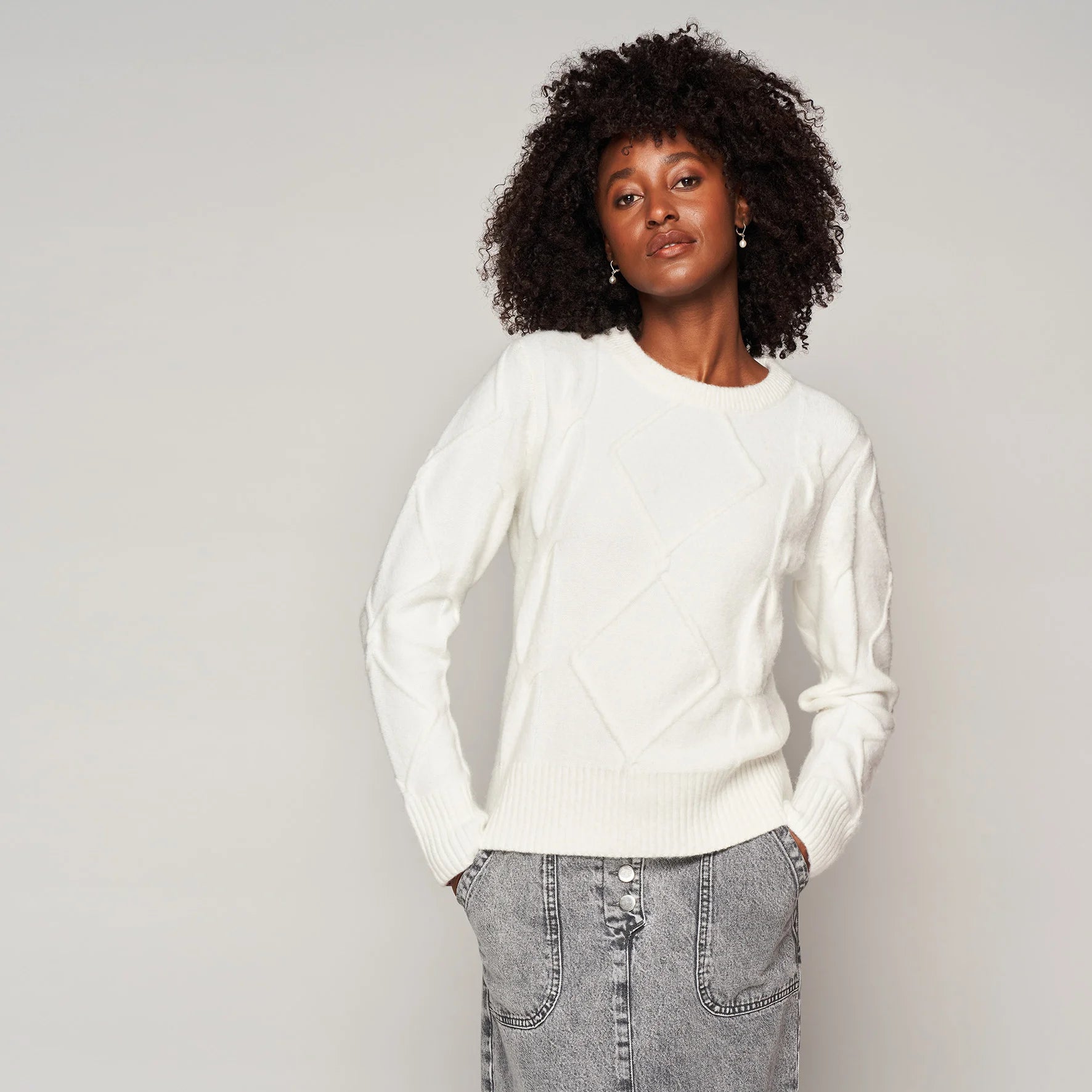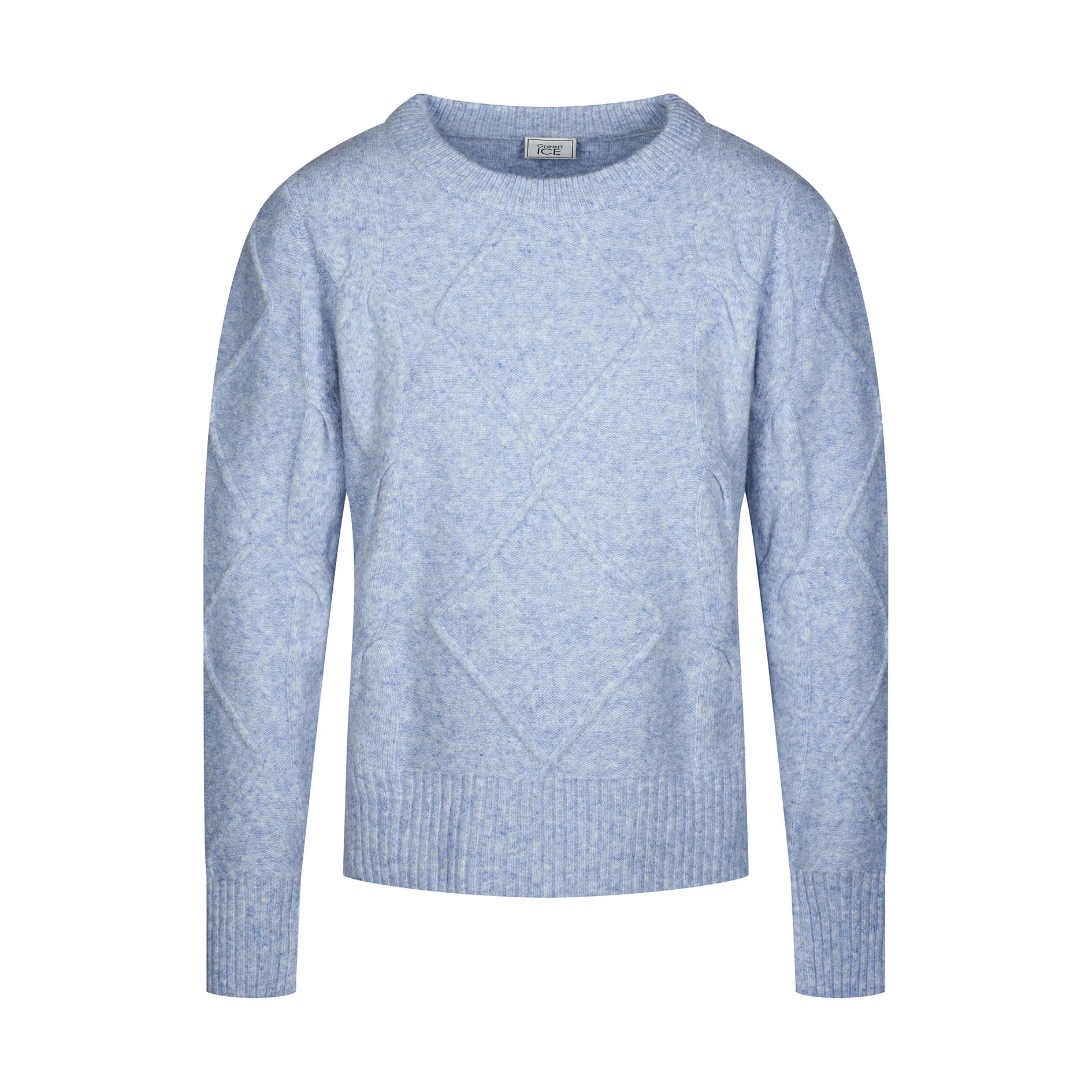 Een trui voorzien van een klassiek kabelpatroon, warm en comfortabel