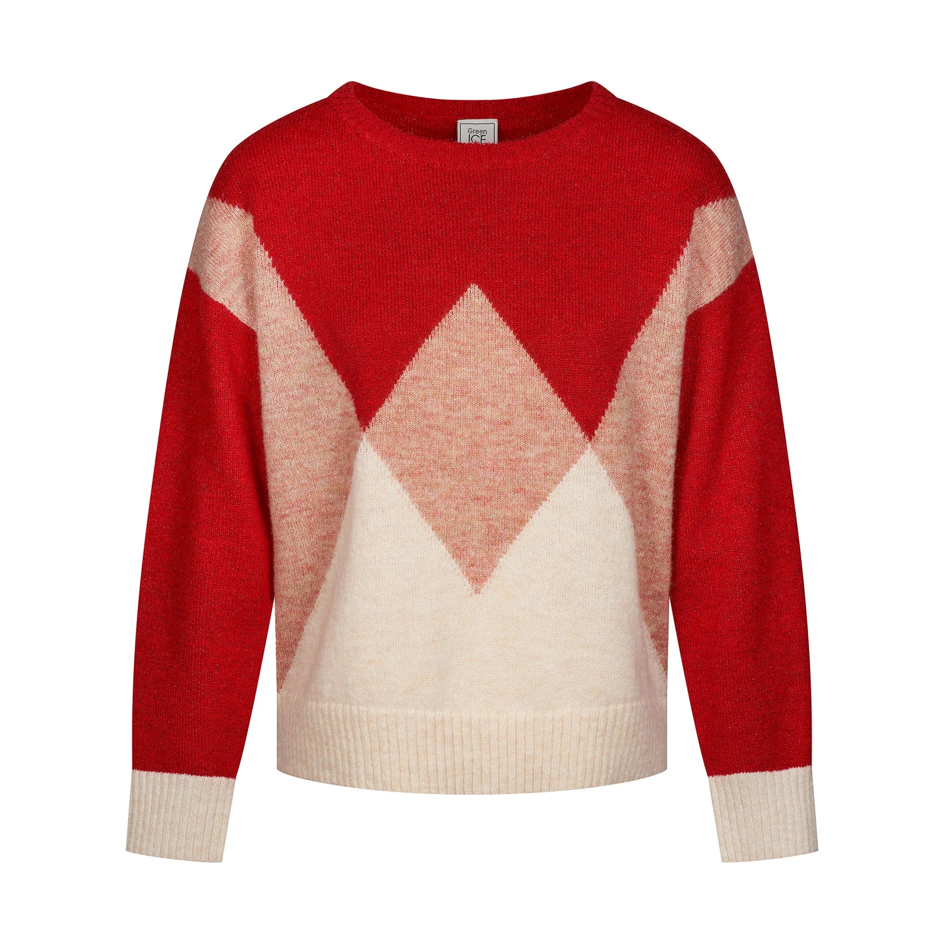 Grofgebreide trui (7-gauge) met een opvallend intarsia patroon voor een moderne en stijlvolle look