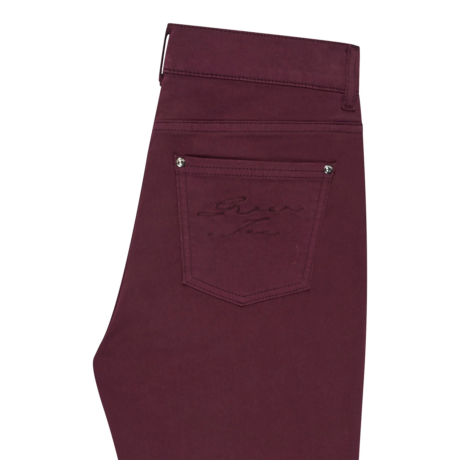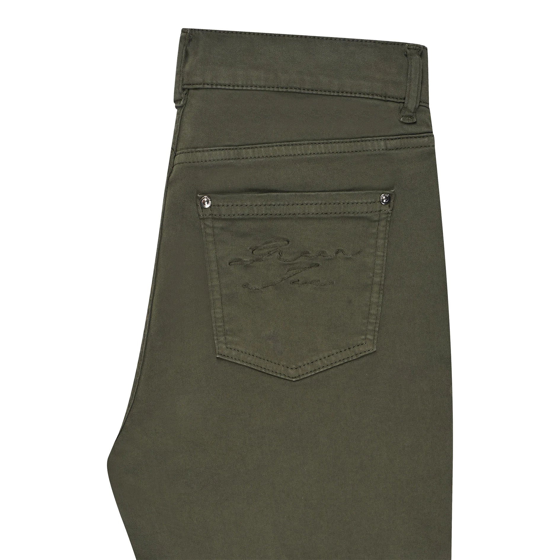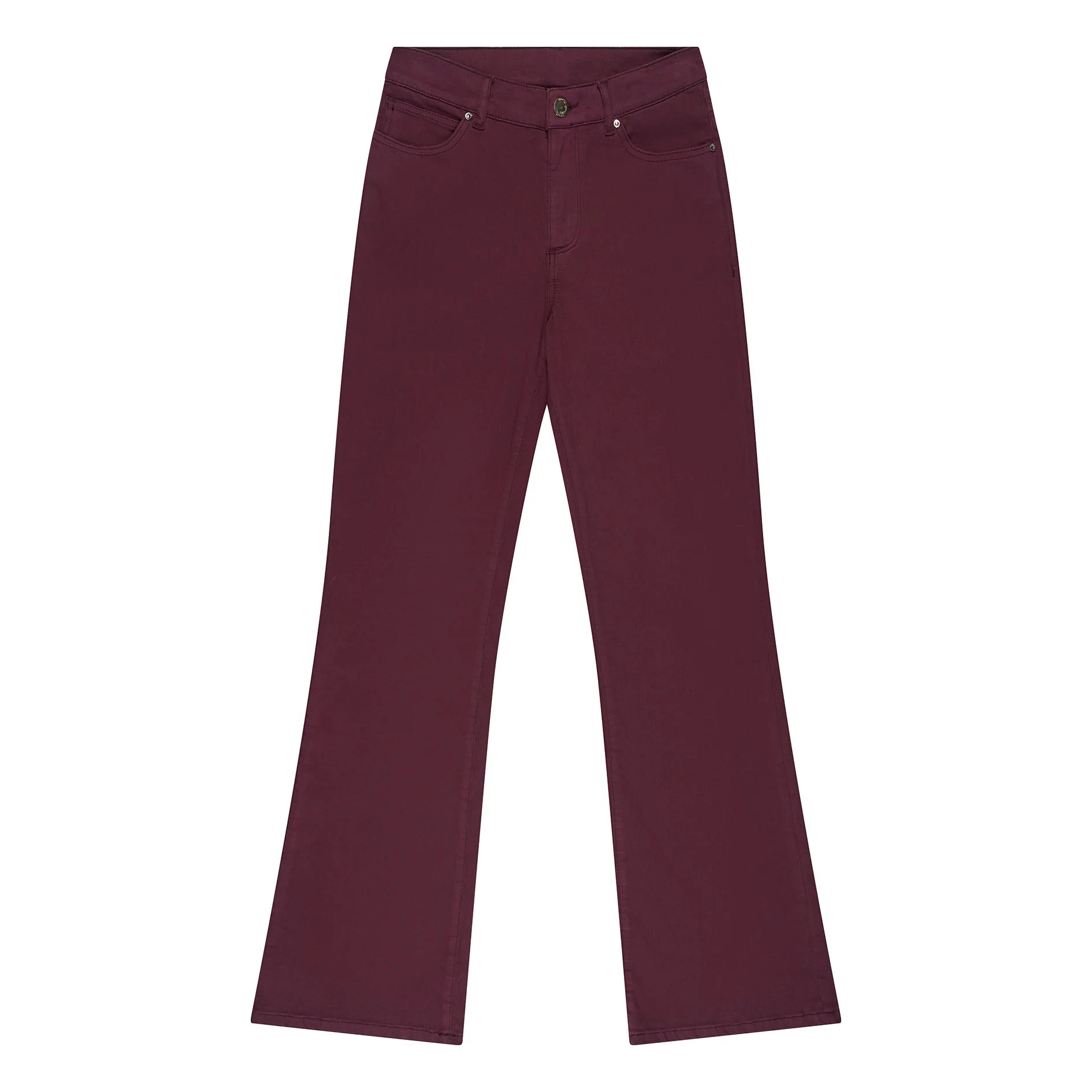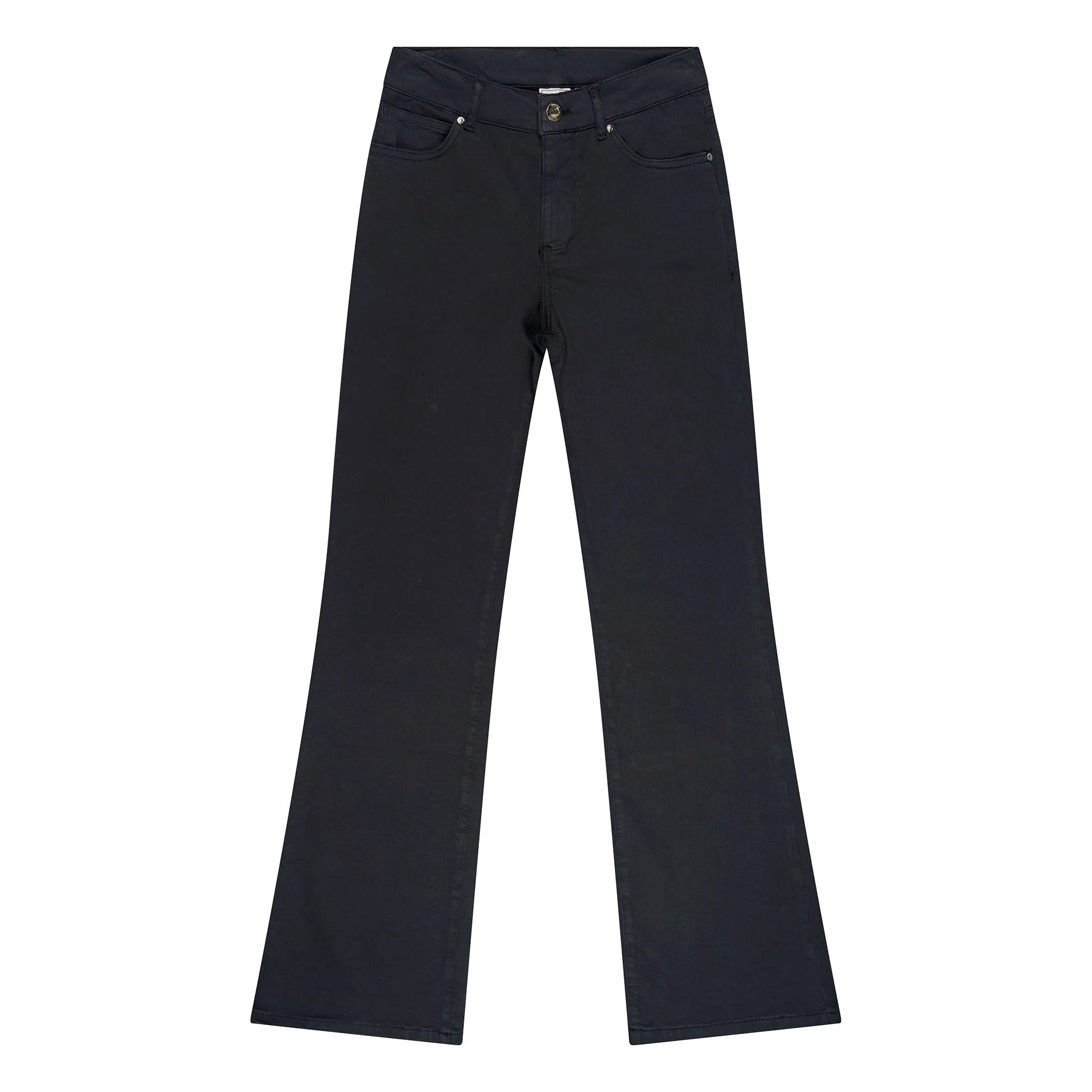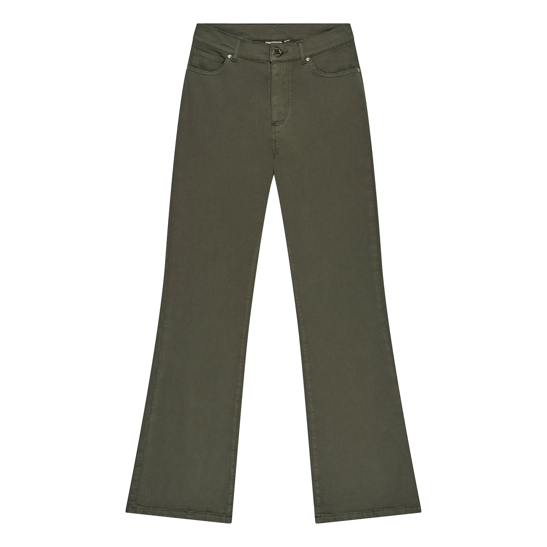 Een katoenen broek met een binnenbeenlengte van 80cm en voorzien van een flared pasvorm