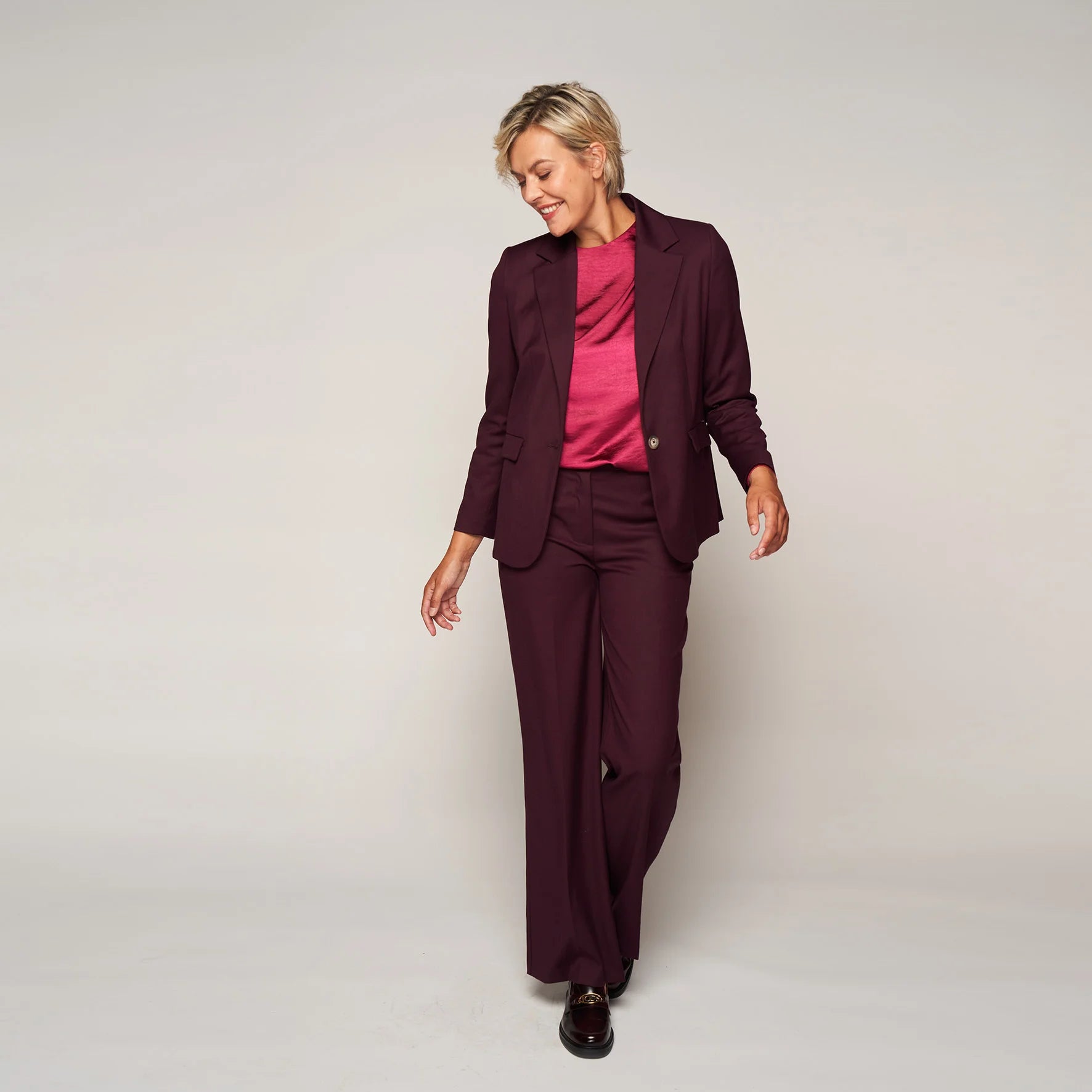 Een broek met een binnenbeenlengte van 80cm en voorzien van een wijde pasvorm