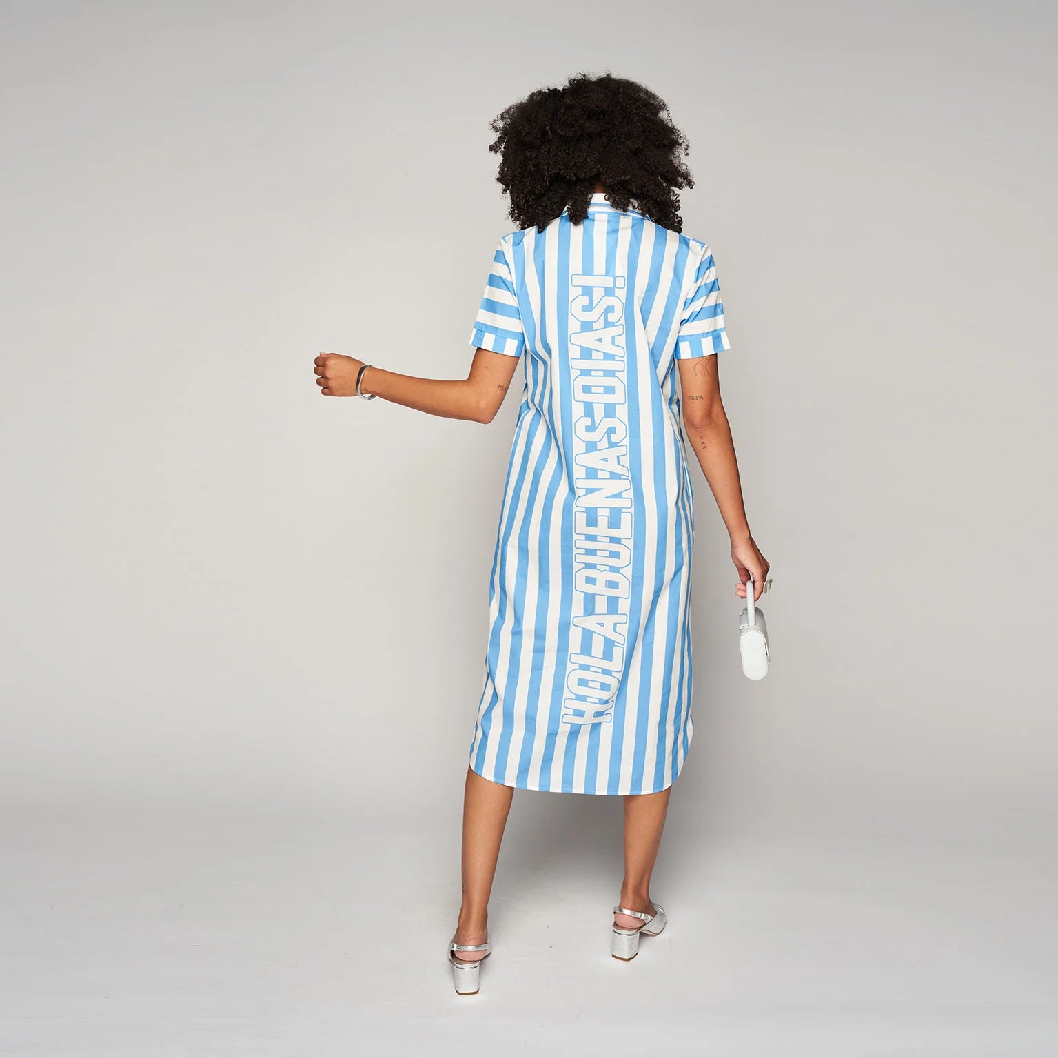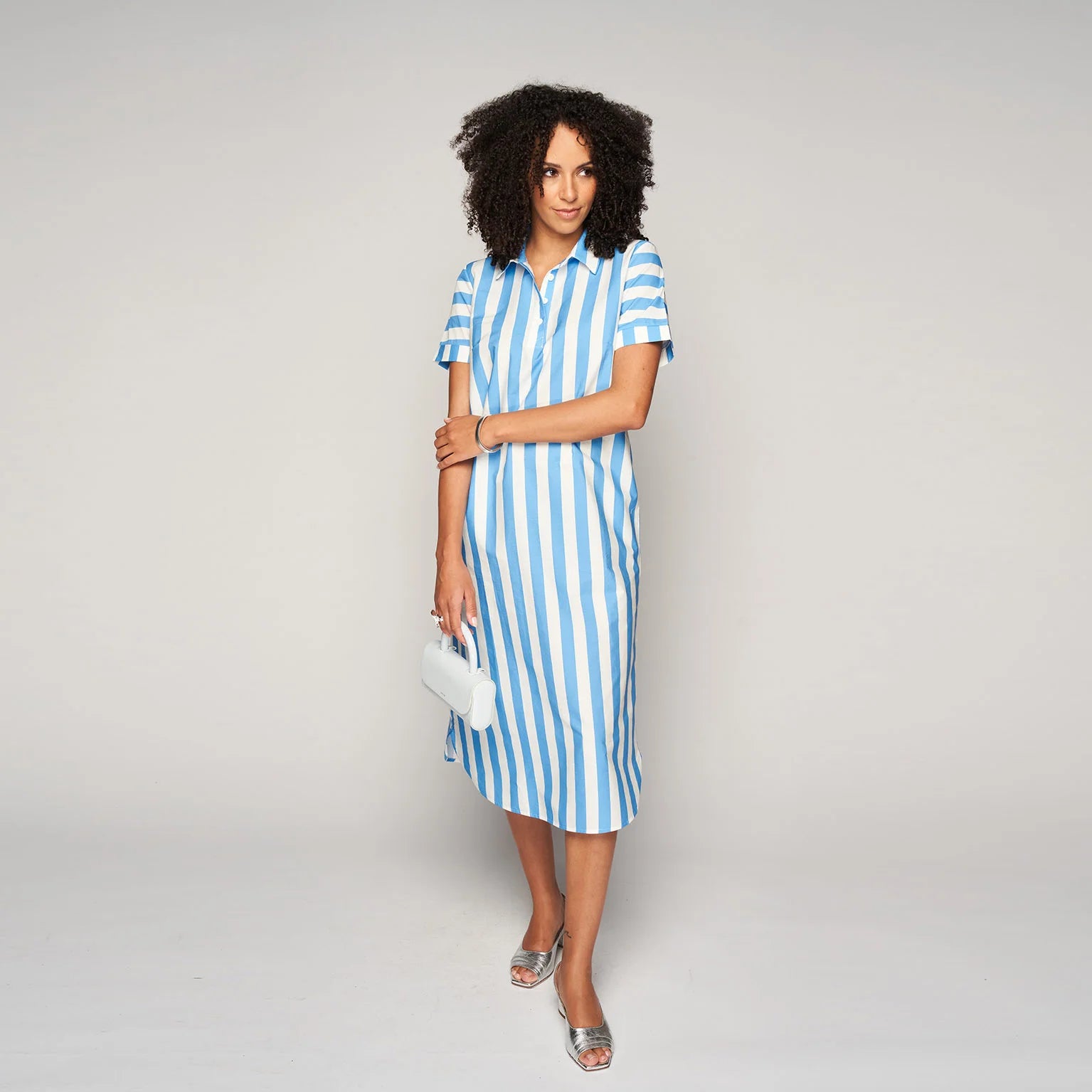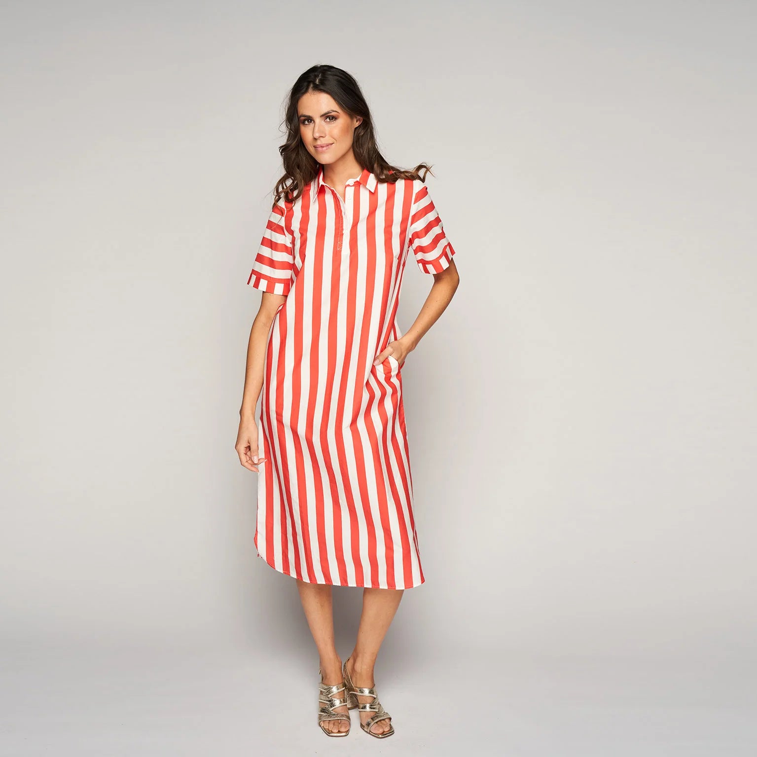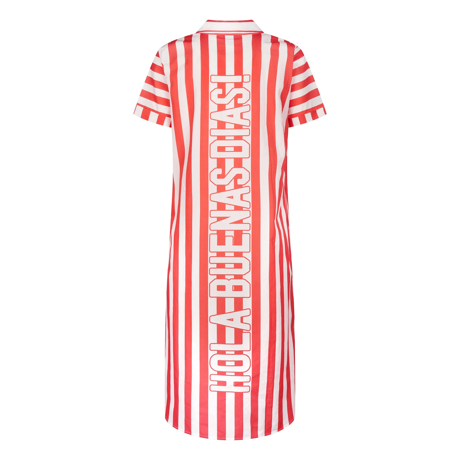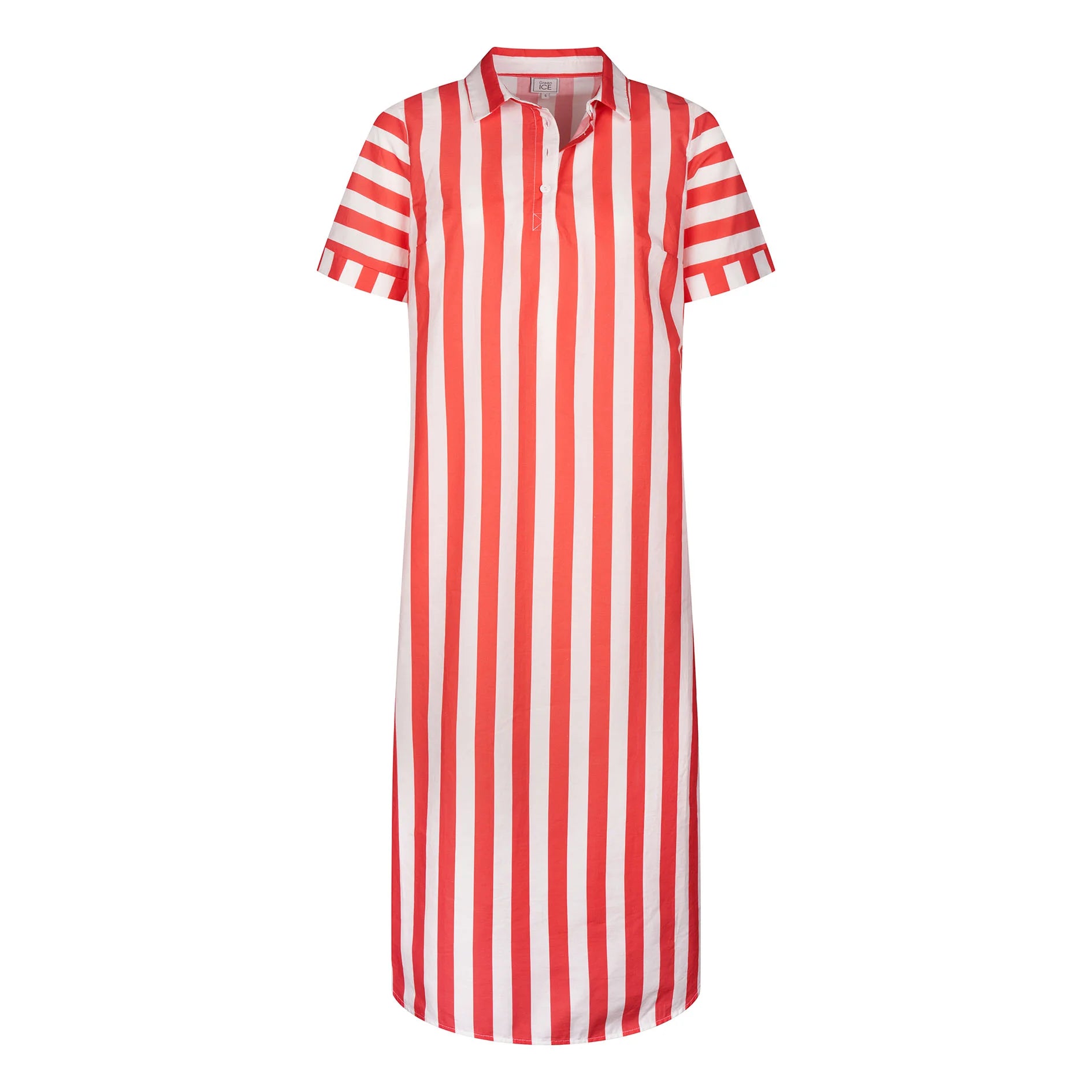 Gestreepte jurk met overhemdkraag en een knopensluiting aan de voorzijde. Totale lengte vanaf het schouder-nekpunt van 115cm voor een speelse en stijlvolle uitstraling.