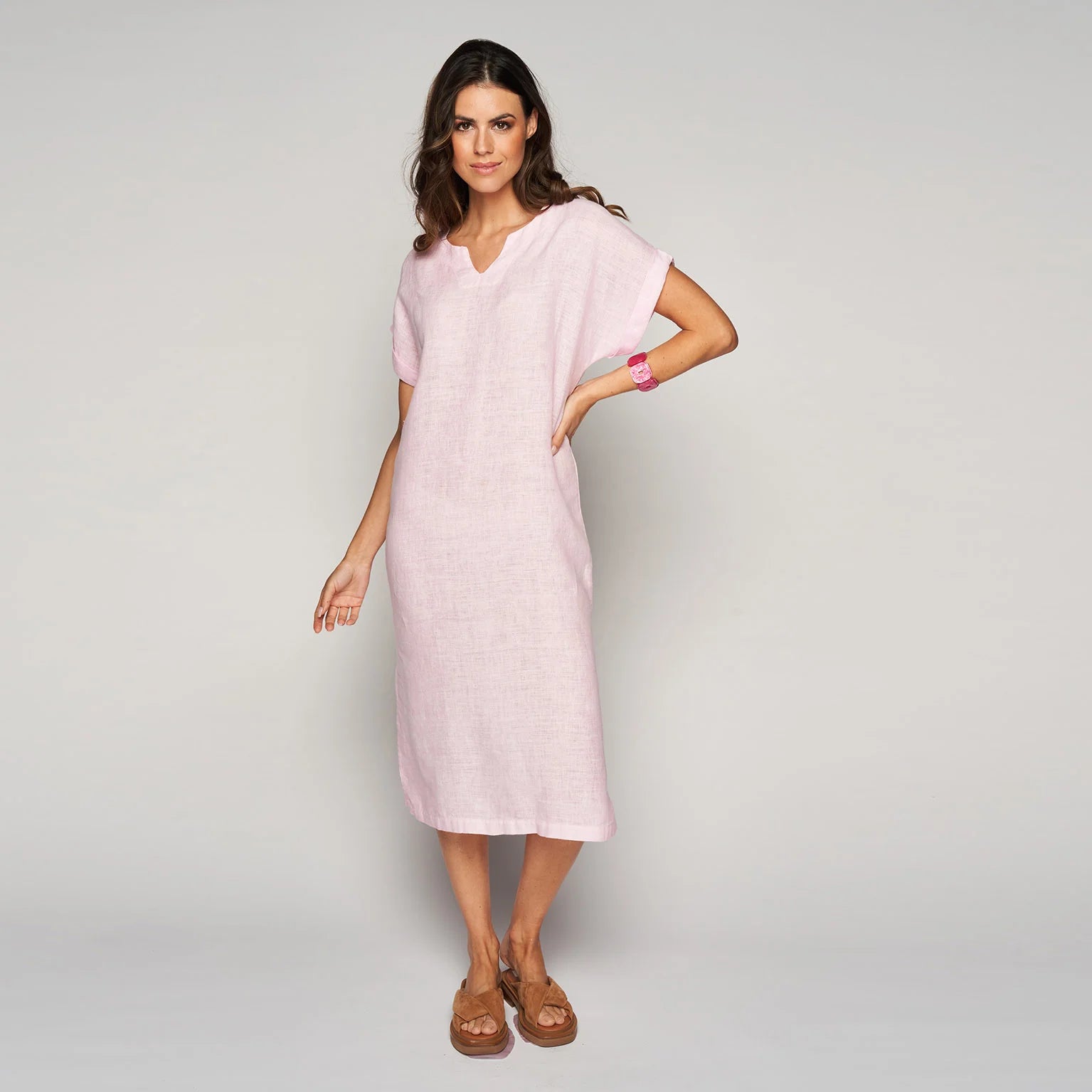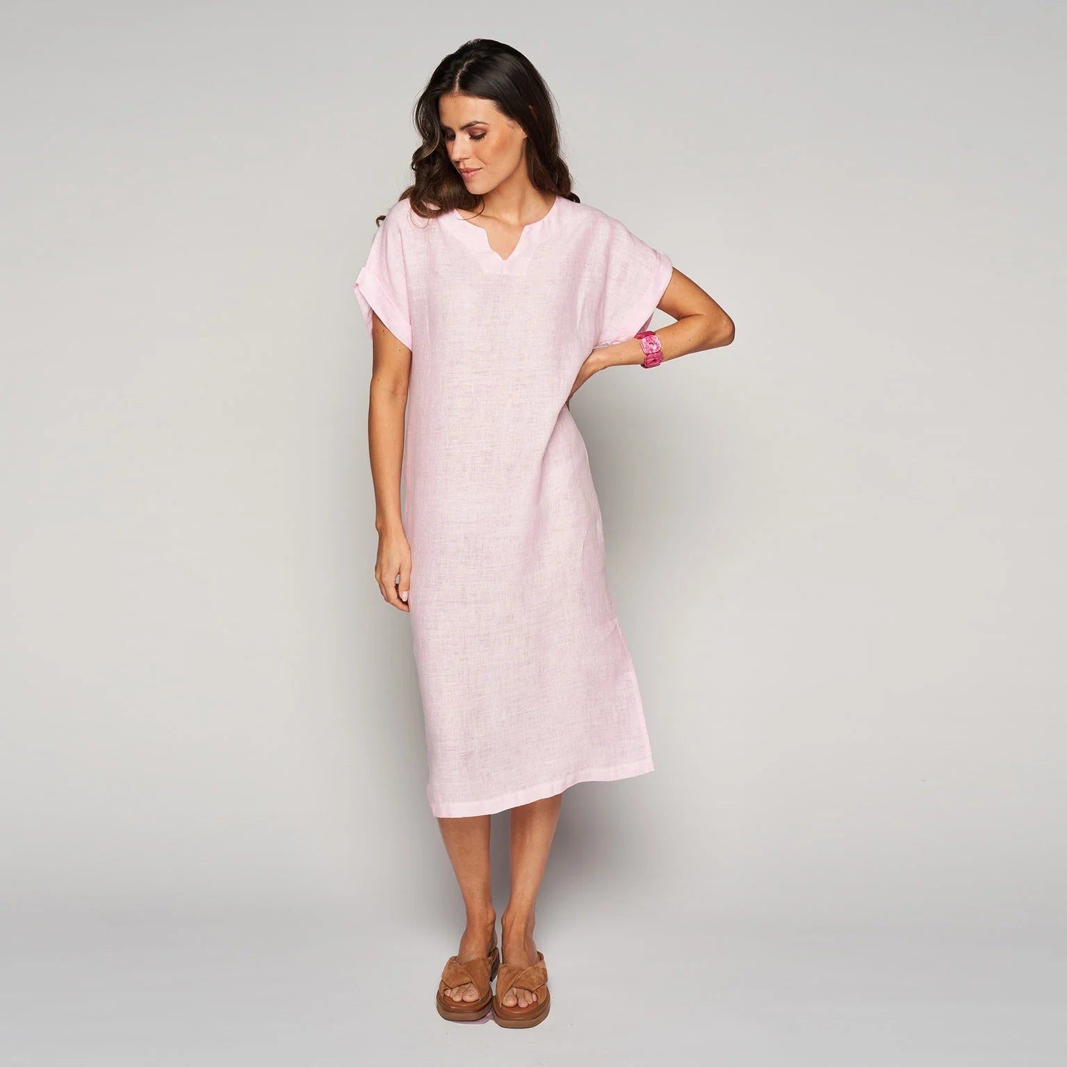 Lichte en luchtige jurk van linnen, met een totale lengte vanaf het schouder-nekpunt van 120cm voor een comfortabele en stijlvolle pasvorm