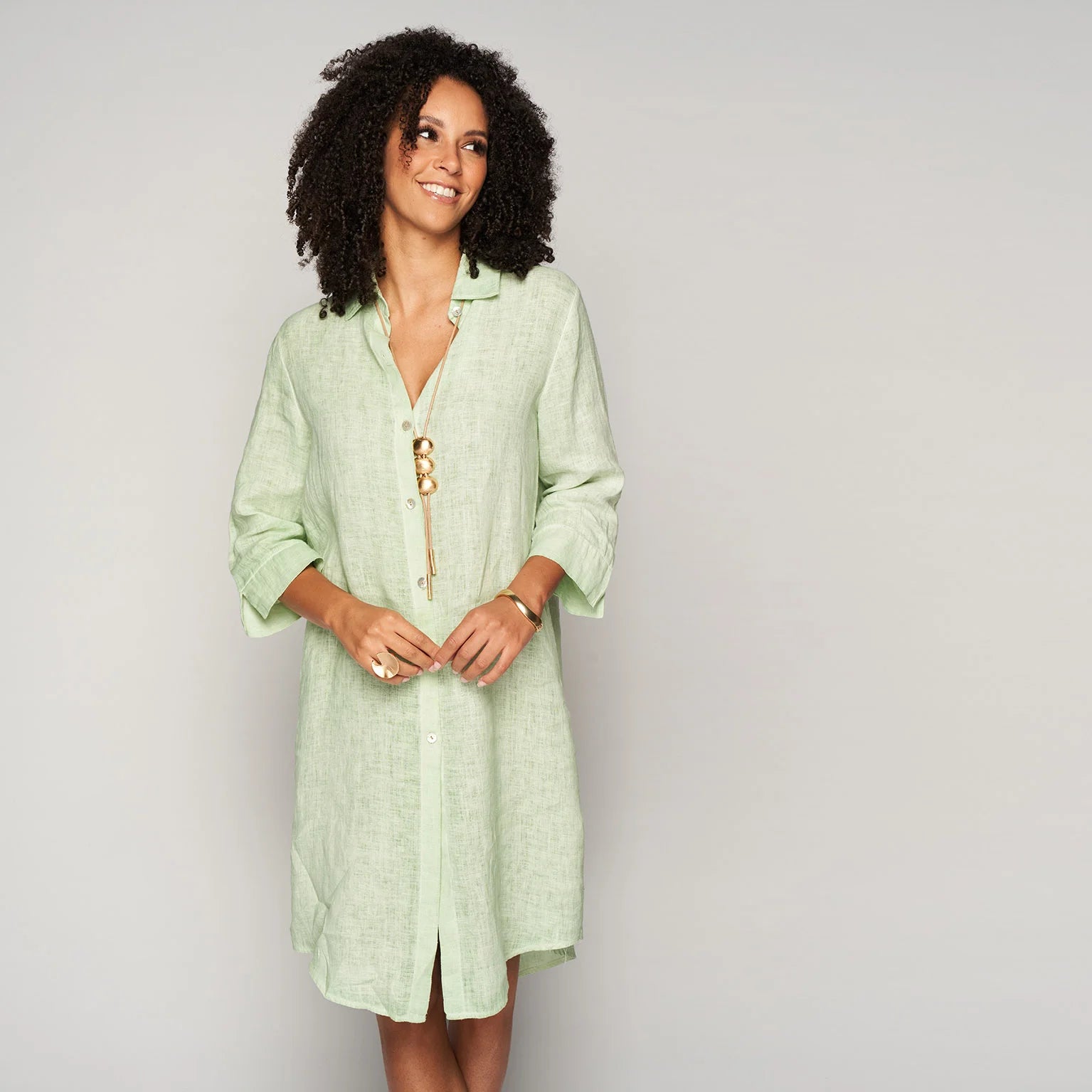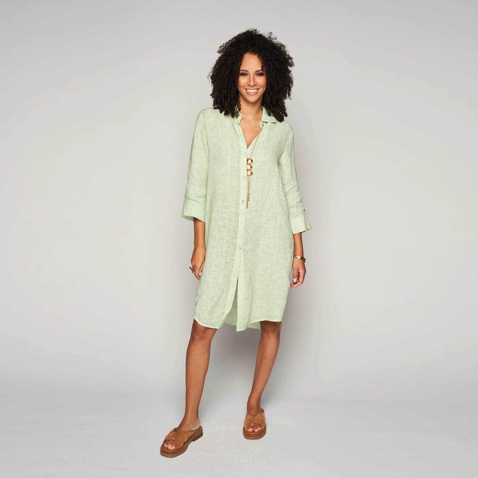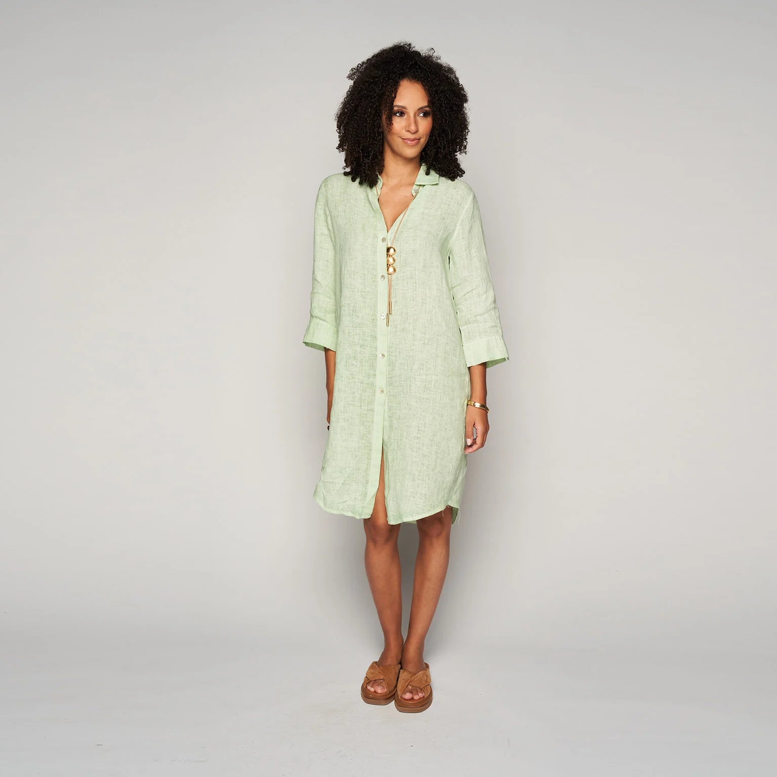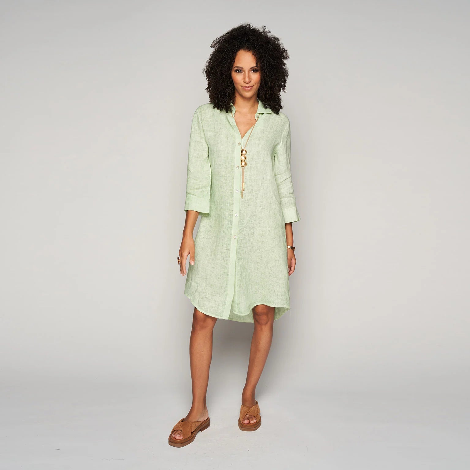 Lichte en luchtige jurk van linnen, met een totale lengte vanaf het schouder-nekpunt van 105cm voor een comfortabele en stijlvolle uitstraling.