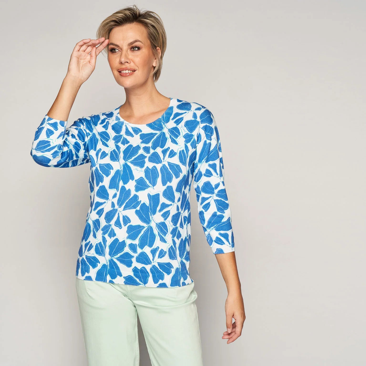 Trui met ronde hals, 12-gauge breisel en all-over print voor een comfortabele en eigentijdse uitstraling
